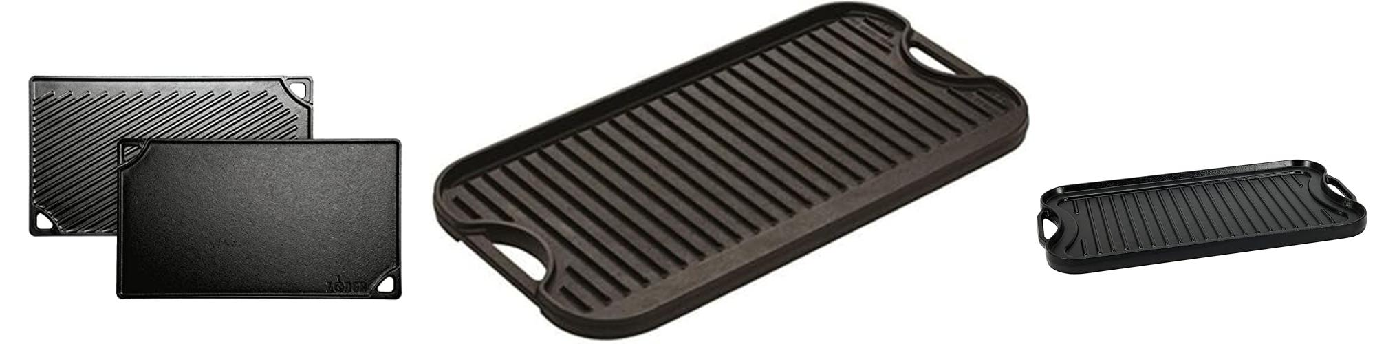 - Made from strong cast iron, this griddle is built to last. It’s safe to use on gas stovetops, in the oven, and even over an open campfire.