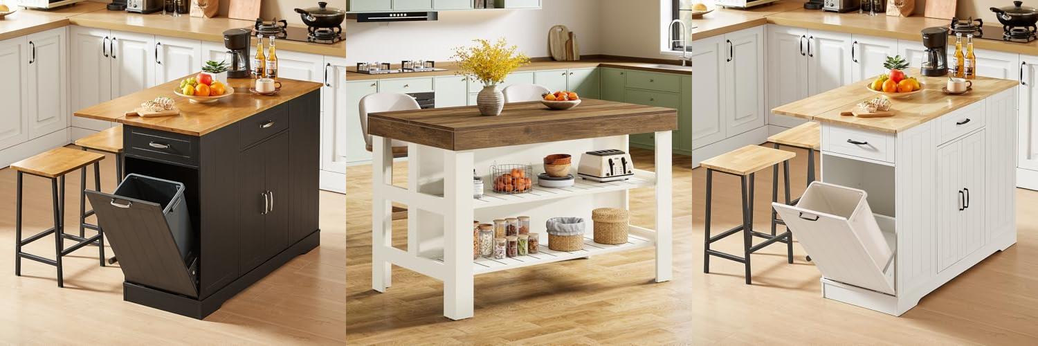 - Massive Storage: This island offers generous cabinet space, two large drawers, and a handy 3-level side shelf. It easily holds all your tableware, kitchenware, spices, and even small appliances.