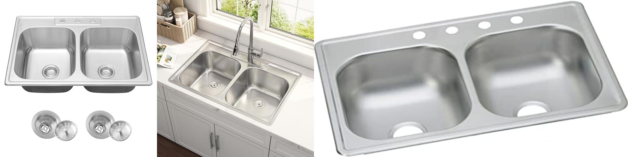 1. Kitsitchen 33×22-Inch Drop-in Stainless Steel 50/50 Double Bowl Kitchen Sink with Strainer