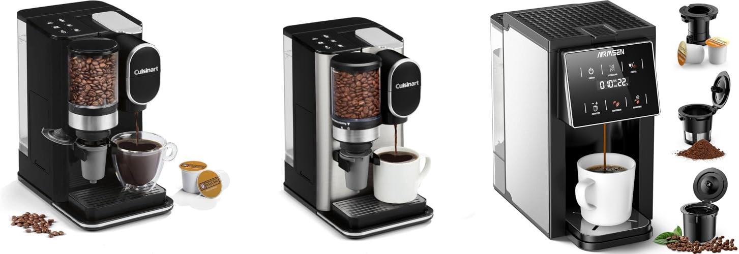 • 3-in-1 Brewing: You can use whole beans, grounds, or K-Cups. It even grinds your beans fresh for better flavor.