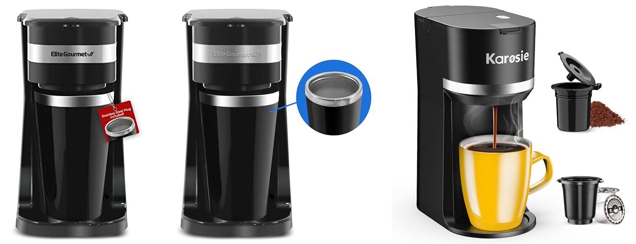 1. Elite Gourmet EHC114 Personal Single-Serve Compact Coffee Maker Brewer Includes 14Oz. Thermal Travel Mug with Stainless Steel Interior