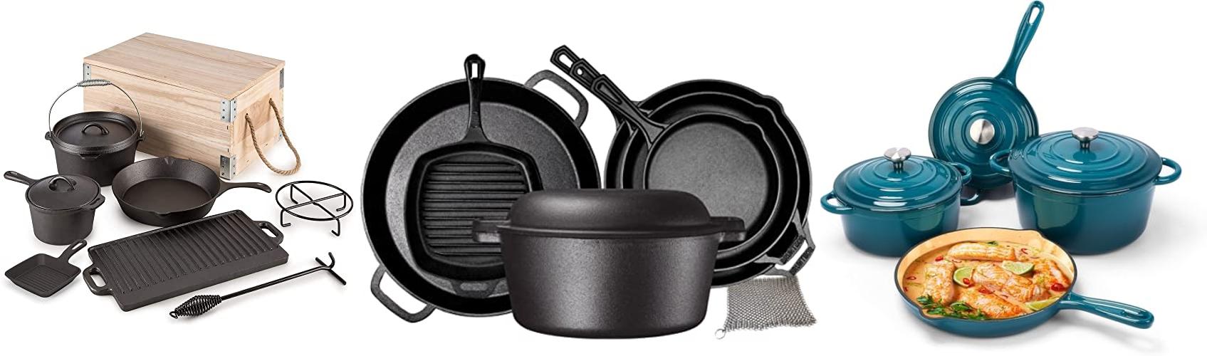- This set has all the pieces you need: a Dutch oven, griddle, saucepot, skillet, lids, and a lifter. You can cook almost anything!